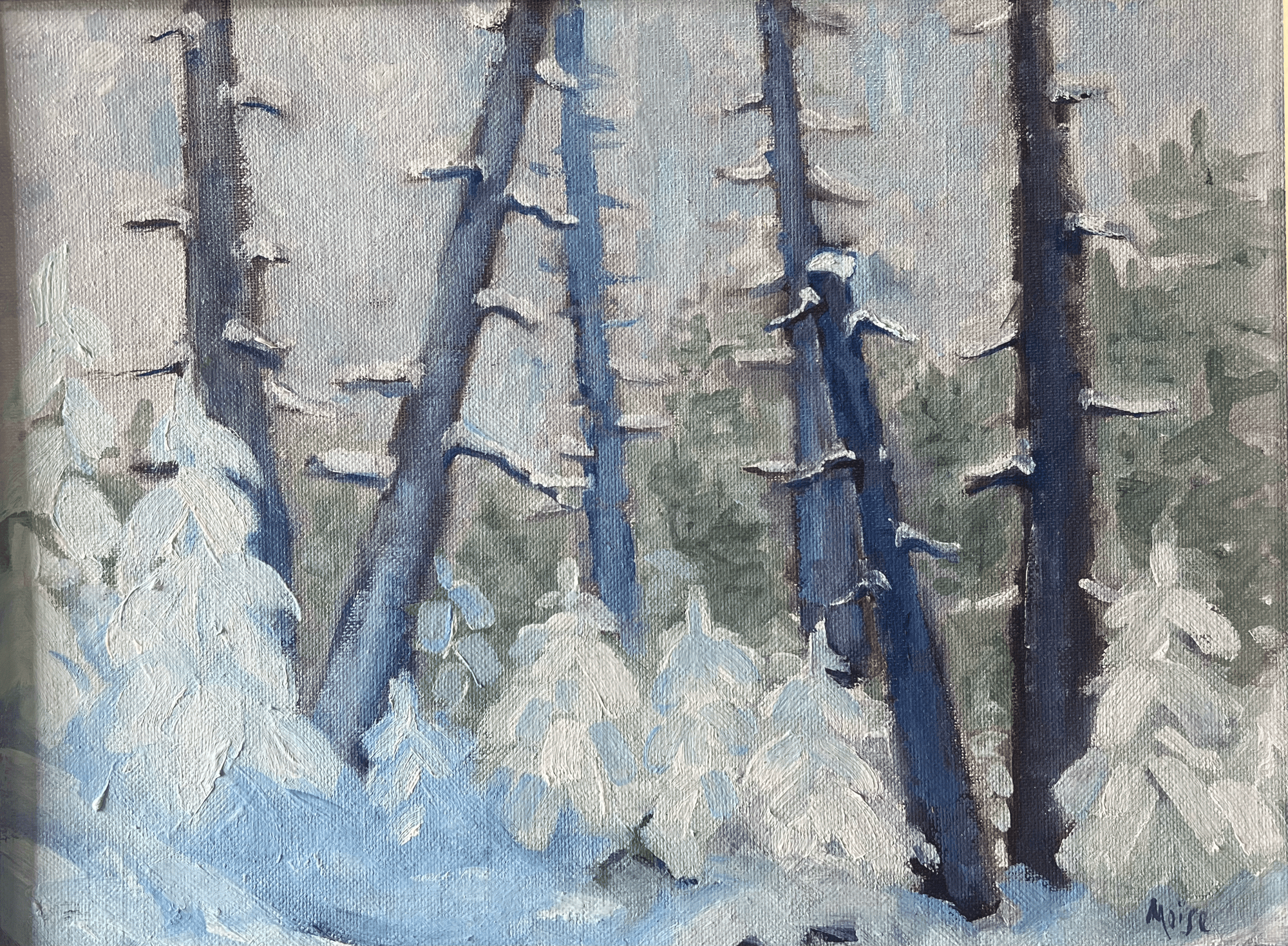 I hadn't painted outside in winter for several years and completely underestimated the need for many layers of clothing.