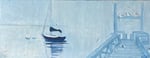 This is one of a series I am still working on, an artistic and historical talisman in memory of the breezy blue days walking to the floating docks, oars over my shoulder; of teenage summer nights sitting with friends on the bench under the lone street light at the end of the wharf- like we were in a magical play, and the ocean beyond part of the set.