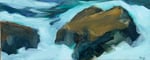 Painted on a glorious day from high above the sea and rocks below. I set up on a strip of grass just after a pull out along Ocean Drive in Acadia National Park, taking care to be aware of my footing as I moved back and forth during painting- I need a lot of room- I learned from my father to constantly move back from the painting, and then up closer to apply paint- then back 5 or 10 feet- the movement keeps one lively, and keeps the energy of the painting flowing. The frequent change in eye focus also keeps one's eyes lively.