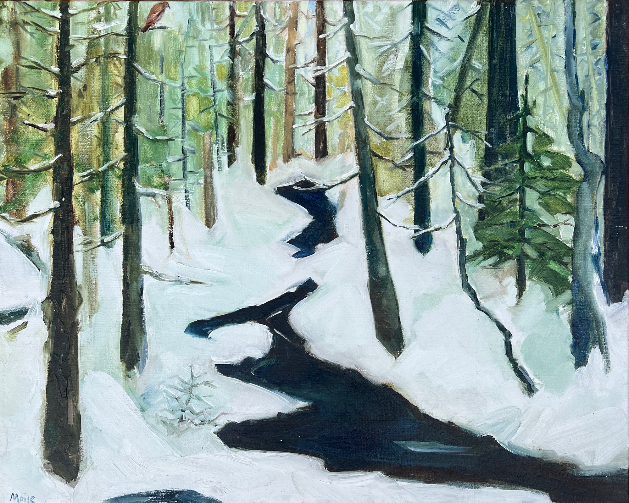 Painting at the stream in the nearby forest, a hawk came to sit high above me. These moments of awe while painting in nature add another glimpse for me of a divine universe.